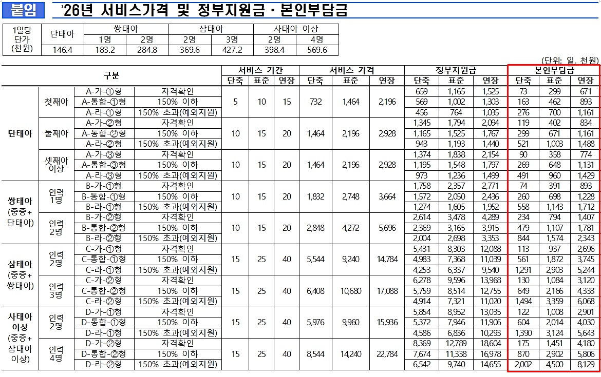 2026년 바우처 서비스 가격